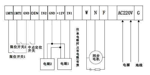 (一)外部接線,連接電源、電機電源線、限位開關(guān)線,按顏色和編號對號接線。